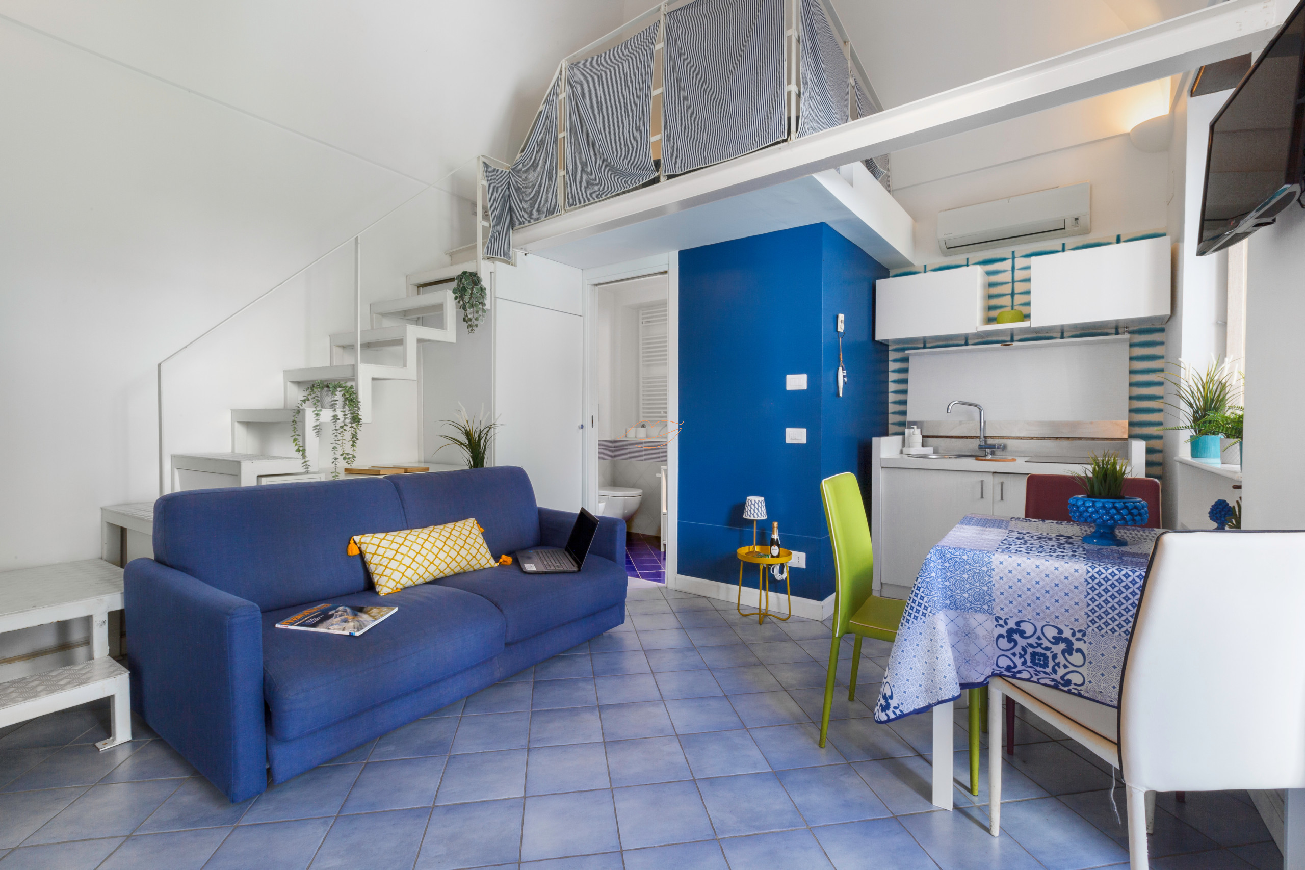 Casa Meta Blu es un encantador estudio ubicado en el primer piso de un edificio del siglo XVIII en Meta di Sorrento. La estructura, ubicada en Piazza Scarpati, desde donde se puede disfrutar de una vista panorámica de toda la península de Sorrento e Isquia, fue renovada en 2015 y es una excelente solución para aquellos que desean pasar unas vacaciones a pocos pasos del mar y al mismo tiempo desean visitar la península de Sorrento y la costa de Amalfi. El centro de Sorrento está a solo 5 km.