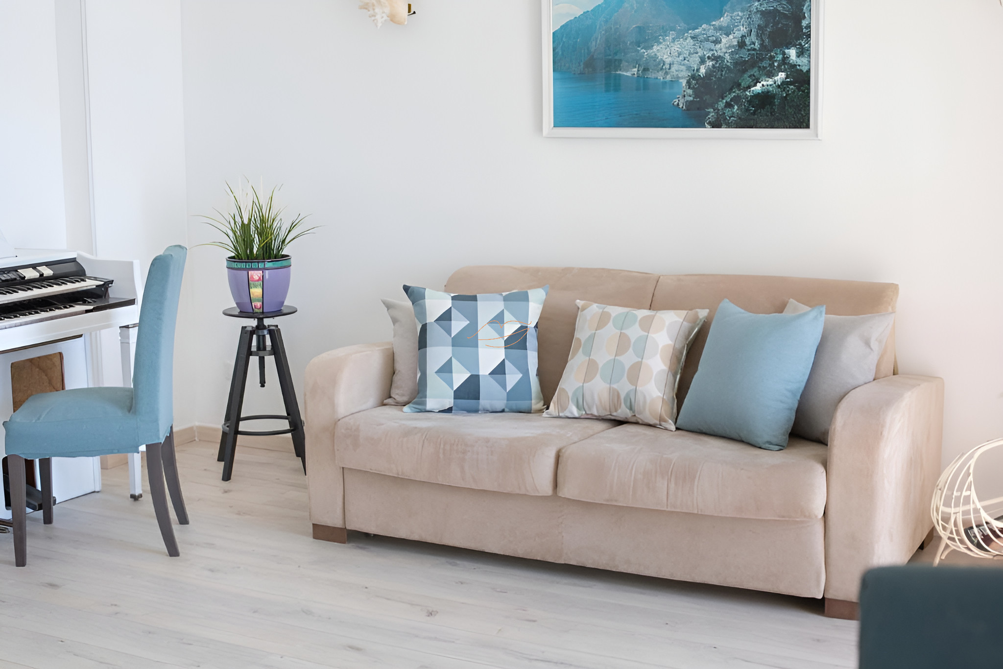 Marè es un apartamento que se encuentra en el corazón de Meta, ofreciendo una posición privilegiada y panorámica que ofrece una espléndida vista al mar reluciente de la costa. Situado en la primera planta de un elegante edificio, el apartamento disfruta de una vista impresionante del mar, que se puede admirar desde cada rincón de la casa. Las amplias ventanas de la sala de estar y los dormitorios inundan el ambiente de luz natural, creando una atmósfera acogedora y relajante. Ideal para viajes familiares y entre amigos, ya que las habitaciones están completamente separadas, el apartamento puede albergar hasta 4 personas y es el refugio ideal para quienes desean vivir la auténtica belleza de la costa sorrentina, a pocos pasos de los principales lugares de interés turístico, pero lejos del frenesí del centro. El mar cristalino y la naturaleza circundante completan un cuadro perfecto de tranquilidad y belleza.