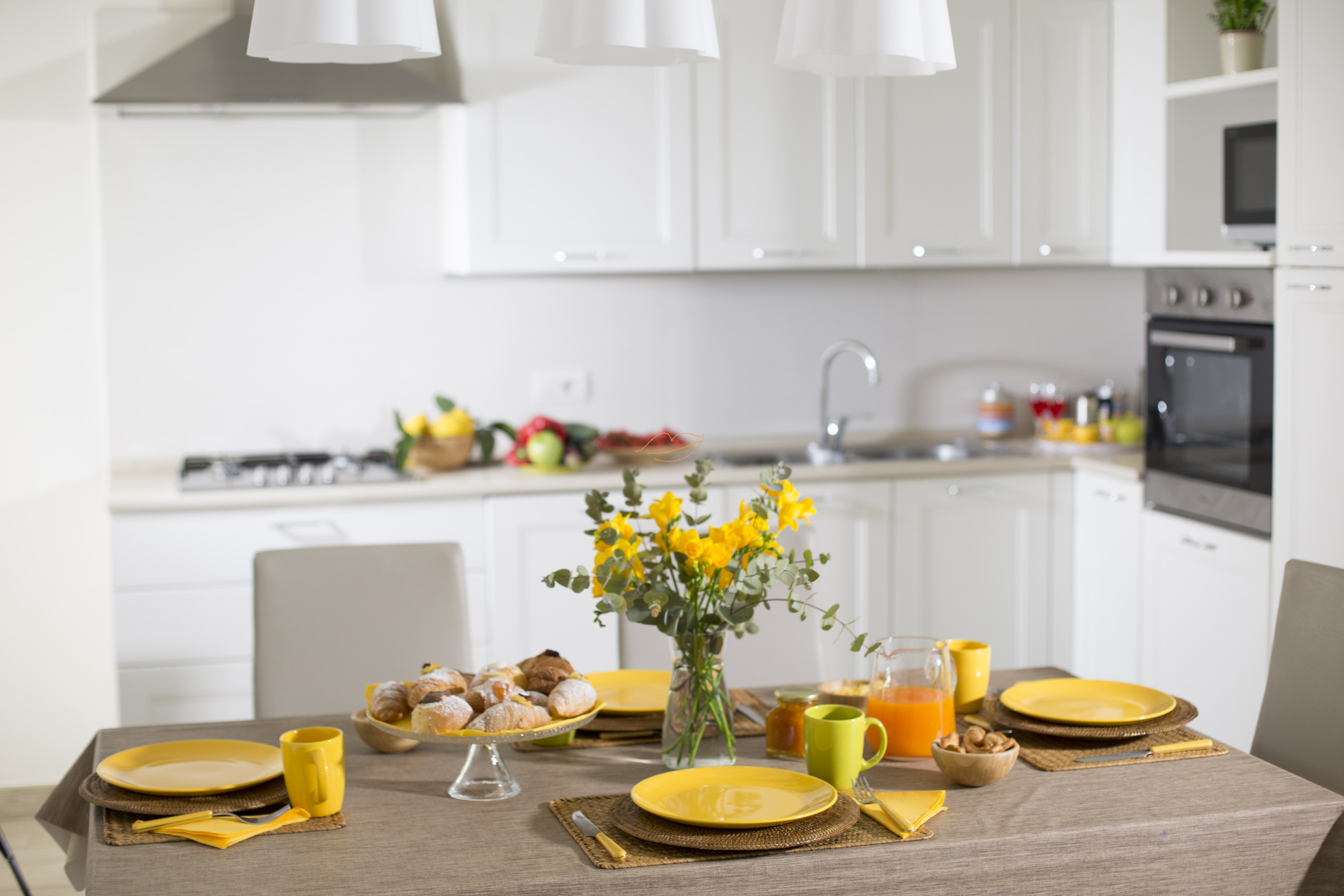 El apartamento consta de un dormitorio principal y una habitación con dos camas individuales, la sala de estar tiene un sofá cama matrimonial. La amplia cocina está bien equipada con cocina, refrigerador, horno y lavavajillas.
