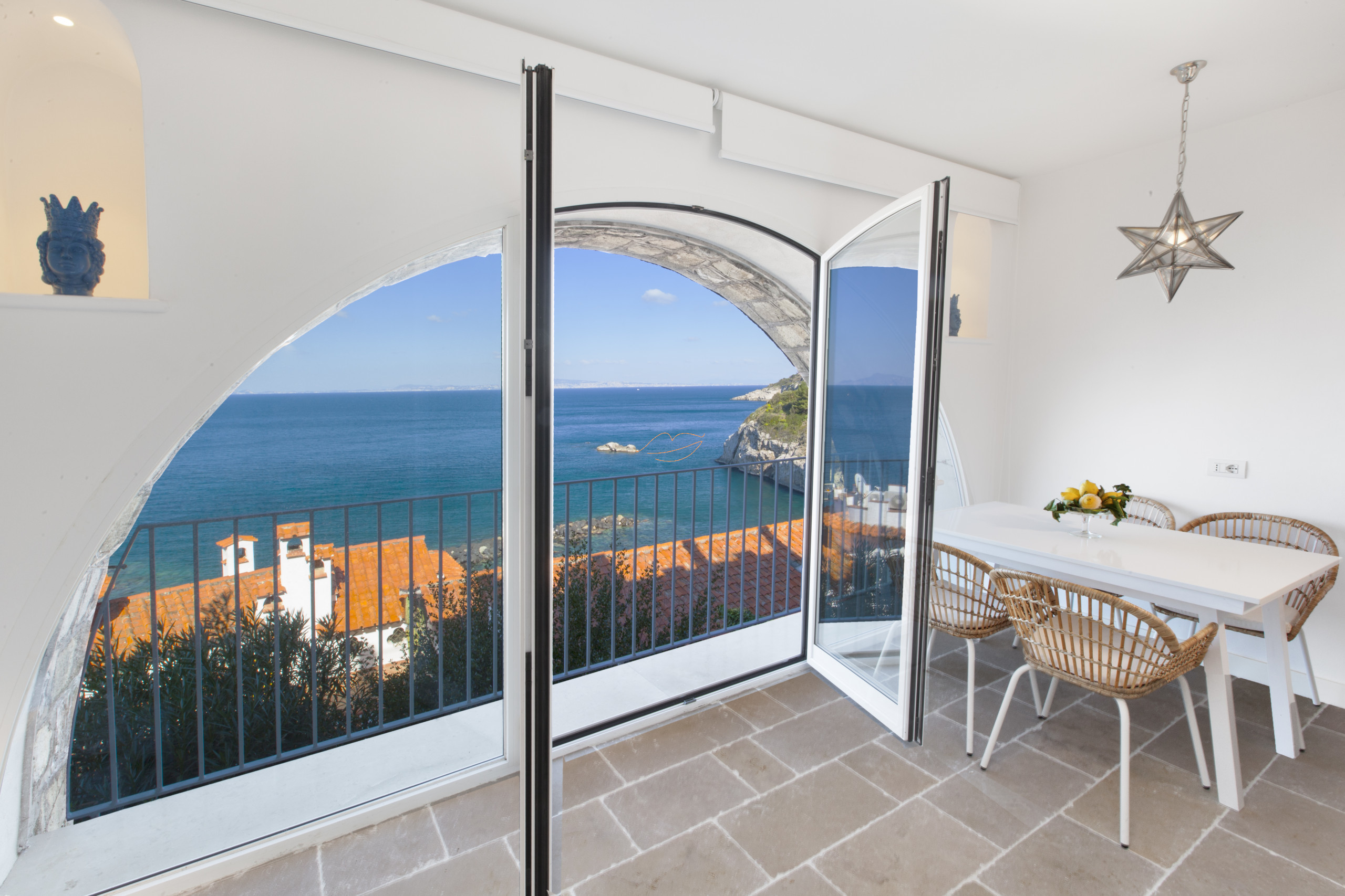 SAN MONTANO est une splendide riviera privée à quelques pas de Massa Lubrense et à moins de 10 minutes en voiture de Sorrente. La côte dispose d'une plage de galets gratuite avec possibilité de location de transats, transats et parasols. La position géographique unique lui permet d'avoir une vue à 360° sur le golfe, d'ici il est possible de voir Capri, Ischia et Procida en même temps. Le logement est entouré de villas de luxe appartenant à une petite élite.