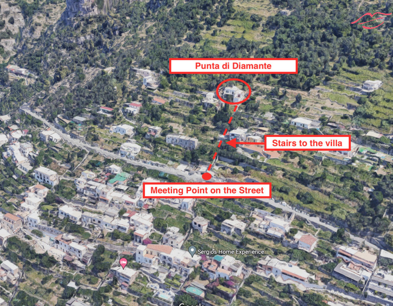 REMARQUE : Tous ces endroits sont uniquement accessibles en descendant des escaliers, en raison de la configuration typique de Praiano, où de nombreux services se trouvent en contrebas de la maison.