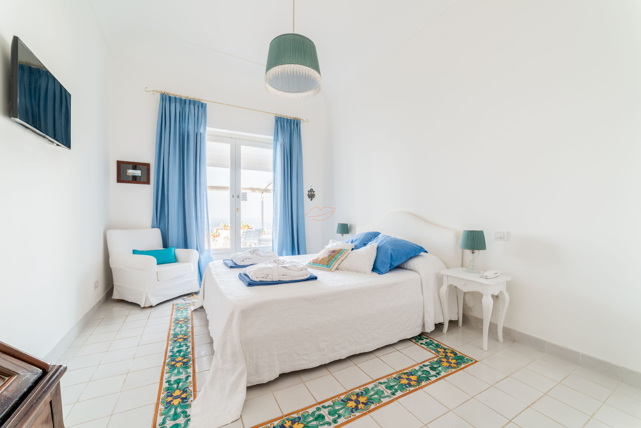 • Tre bagni finemente arredati, ispirati all'estetica di boutique tipica della tradizione amalfitana