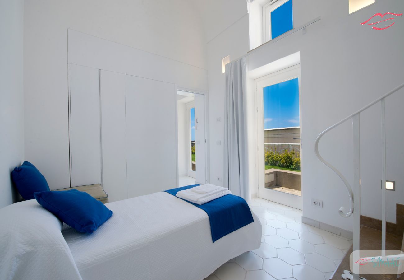 • 1 camera da letto matrimoniale (letto KING SIZE) con bagno privato con doccia vista mare e accesso al giardino antistante