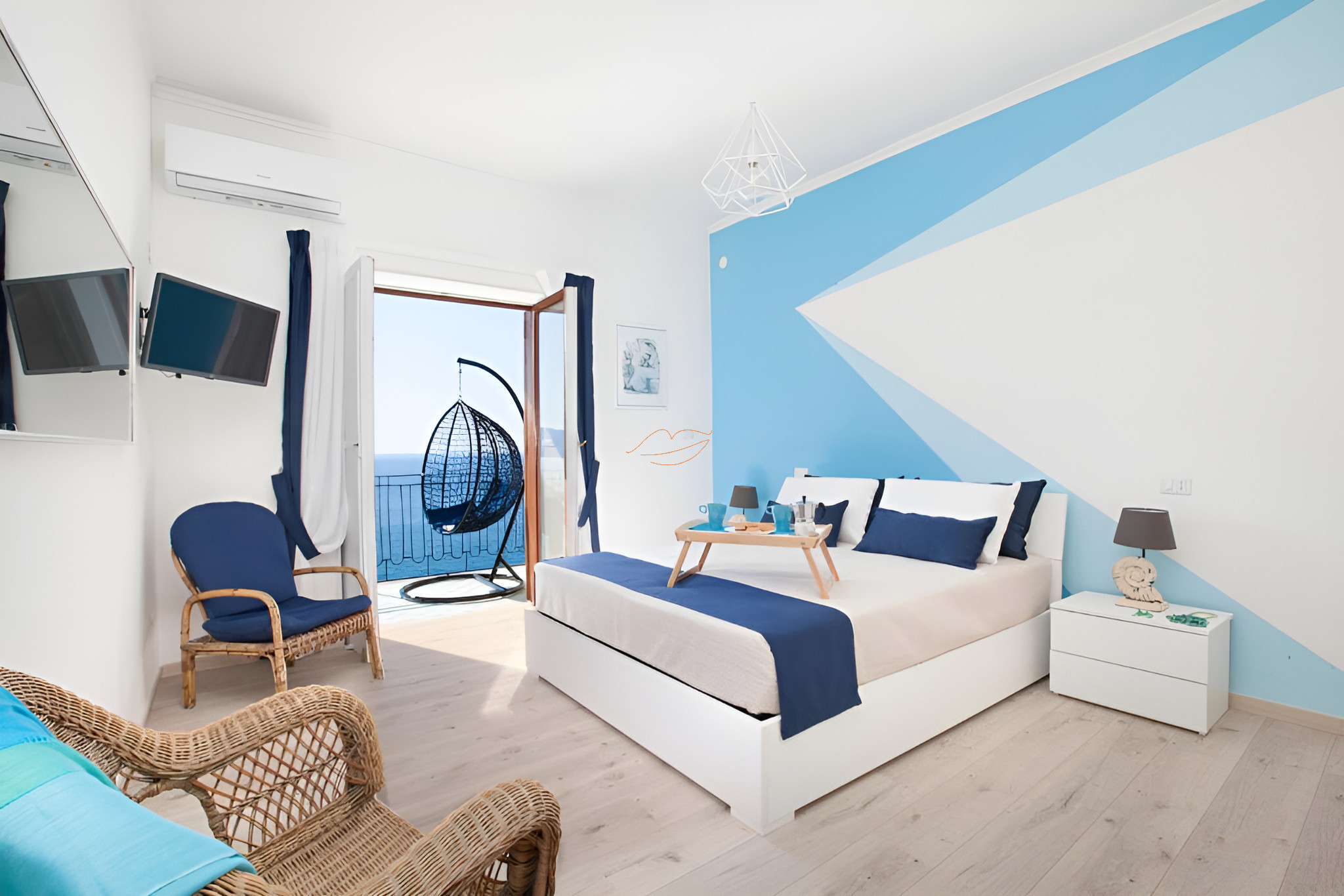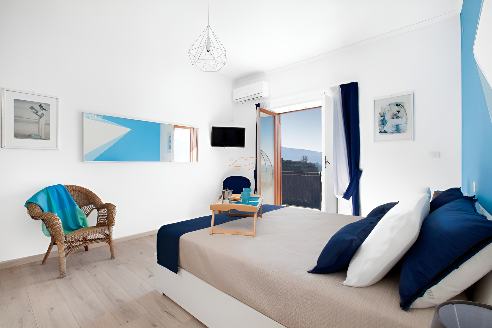 Mare is an apartment located in the heart of Meta, offering a privileged and panoramic position with a splendid view of the sparkling sea of the coast. Situated on the first floor of an elegant building, the apartment enjoys a breathtaking sea view, which can be admired from every corner of the house. The large windows of the living room and bedrooms flood the environment with natural light, creating a welcoming and relaxing atmosphere. Ideal for family and friends trips as the bedrooms are completely separate, the apartment can accommodate up to 4 people and is the perfect refuge for those who want to experience the authentic beauty of the Sorrento coast, a few steps from the main tourist attractions, but far from the hustle and bustle of the centre. The crystal-clear sea and surrounding nature complete a perfect picture of tranquillity and beauty.