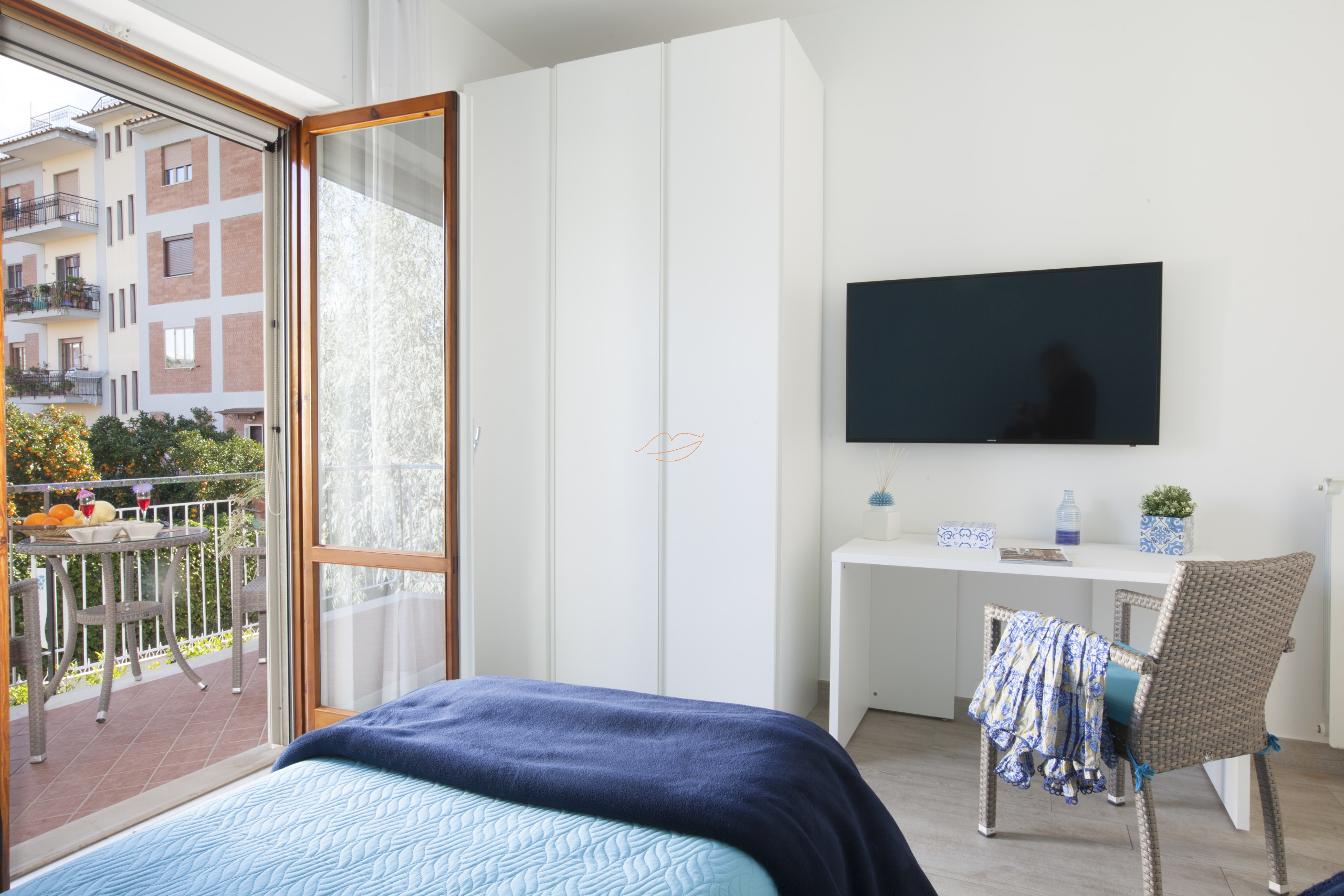A 5 minutes' walk from Piazza Tasso and the Circumvesuviana station, this luxurious apartment completely renovated in 2018 consists of an entrance with a complete kitchen and living room with sofa bed, 2 bedrooms and 2 bathrooms equipped with chromotherapy, one with a Jacuzzi bath. The entire apartment is equipped with air conditioning, Wi-Fi and Smart TV. The spacious terrace is ideal for relaxing in the open air.